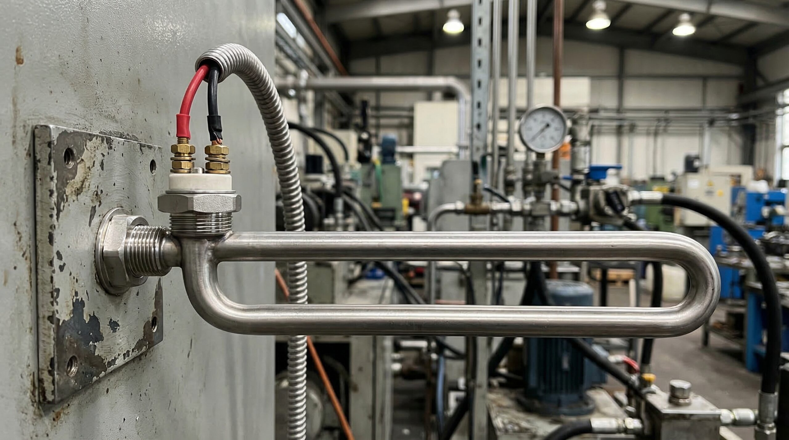 Нержавеющая сталь — самый популярный материал для ТЭНов, контактирующих с водой и слабоагрессивными жидкостями. Марки AISI 304 (08Х18Н10) и AISI 316 (08Х17Н13М2) обеспечивают превосходную коррозионную стойкость. AISI 304 подходит для большинства бытовых и промышленных применений с водой, в то время как AISI 316 с молибденом демонстрирует повышенную устойчивость к хлоридам и кислотам, что делает ее идеальной для агрессивных сред или морской воды. ТЭНы из нержавеющей стали устойчивы к образованию накипи и служат до 10 лет при эксплуатации в рекомендованных условиях.