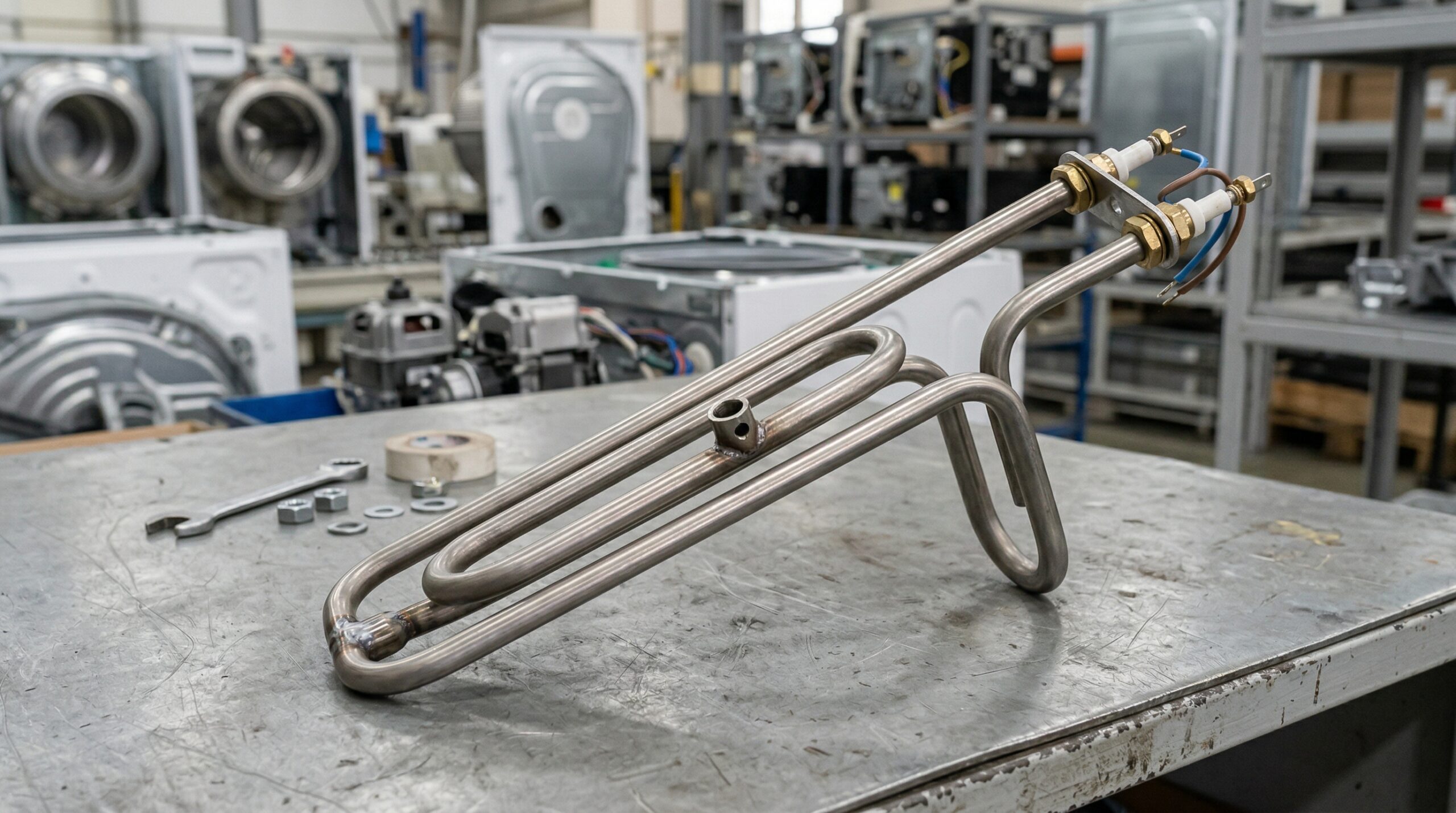 - Нержавеющая сталь AISI 304: Самый популярный материал для ТЭНов (аналог по ГОСТ — 08Х18Н10). Эта сталь устойчива к коррозии в воде, щелочных растворах и слабых кислотах, что идеально подходит для стиральных и посудомоечных машин. Она выдерживает нагрев до 95°C и служит в среднем 5-7 лет при соблюдении правил эксплуатации.