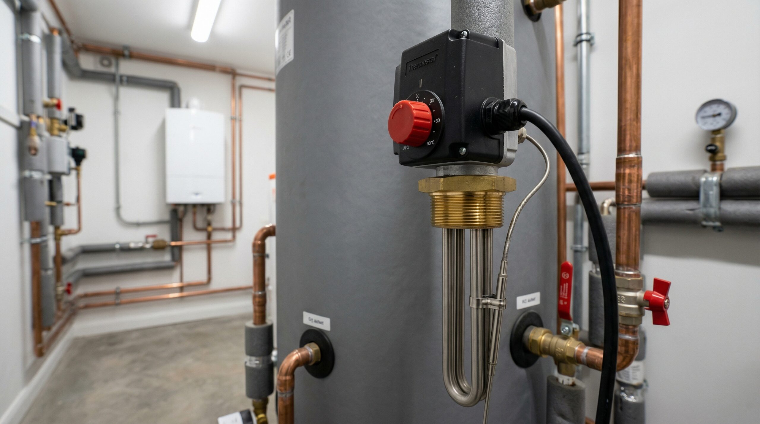ТЭН RCT с терморегулятором — это высокоэффективный трубчатый электронагреватель, разработанный специально для бытовых водонагревателей и систем отопления. Он обеспечивает точный и автоматический контроль температуры воды до 70°C, предотвращая перегрев и избыточное энергопотребление. Благодаря компактной конструкции, коррозионностойким материалам (стандарт AISI 304/316) и стандартному фланцевому креплению G 1¼, ТЭНы RCT идеально подходят для замены и модернизации в бойлерах Thermex, Ariston, Electrolux и других накопительных водонагревателях. Наши исследования показывают, что использование таких ТЭНов увеличивает срок службы оборудования на 30-37% за счет стабильного температурного режима и снижения образования накипи.