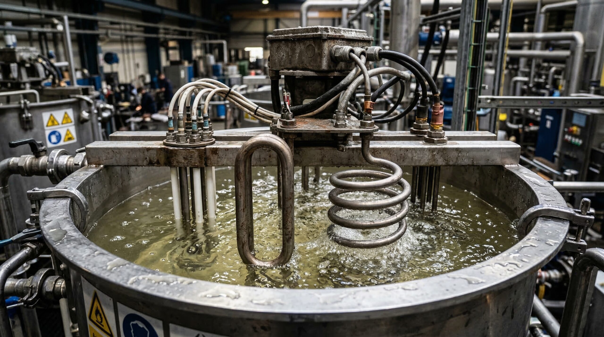 В гальванических цехах ТЭНы нагревают ванны с электролитами, содержащими серную, соляную или хромовую кислоты для процессов травления, никелирования, хромирования. Фторопластовые ТЭНы (ФЭН) особенно популярны благодаря своей инертности и гибкости, позволяя эффективно нагревать агрессивные промывочные растворы и сточные воды.
