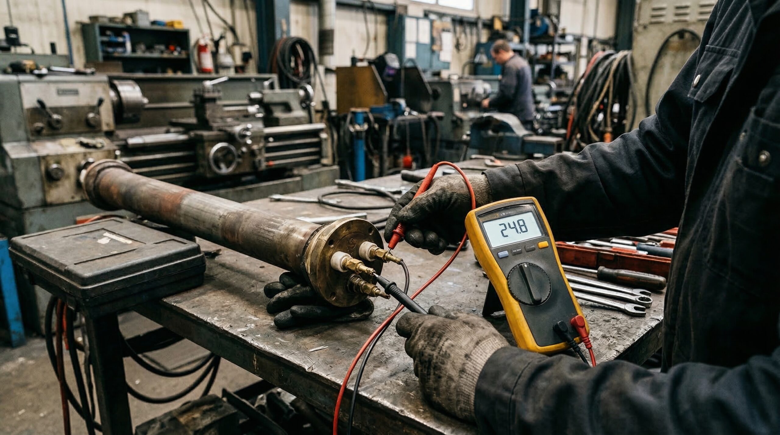 Проверка сопротивления изоляции с помощью мегаомметра позволяет убедиться, что отсутствует утечка тока с нагревательной спирали на металлический корпус ТЭНа. Низкое сопротивление изоляции (менее 0,5 МОм) указывает на наличие влаги внутри изоляционного слоя или пробой, что является опасным и может привести к поражению электрическим током.